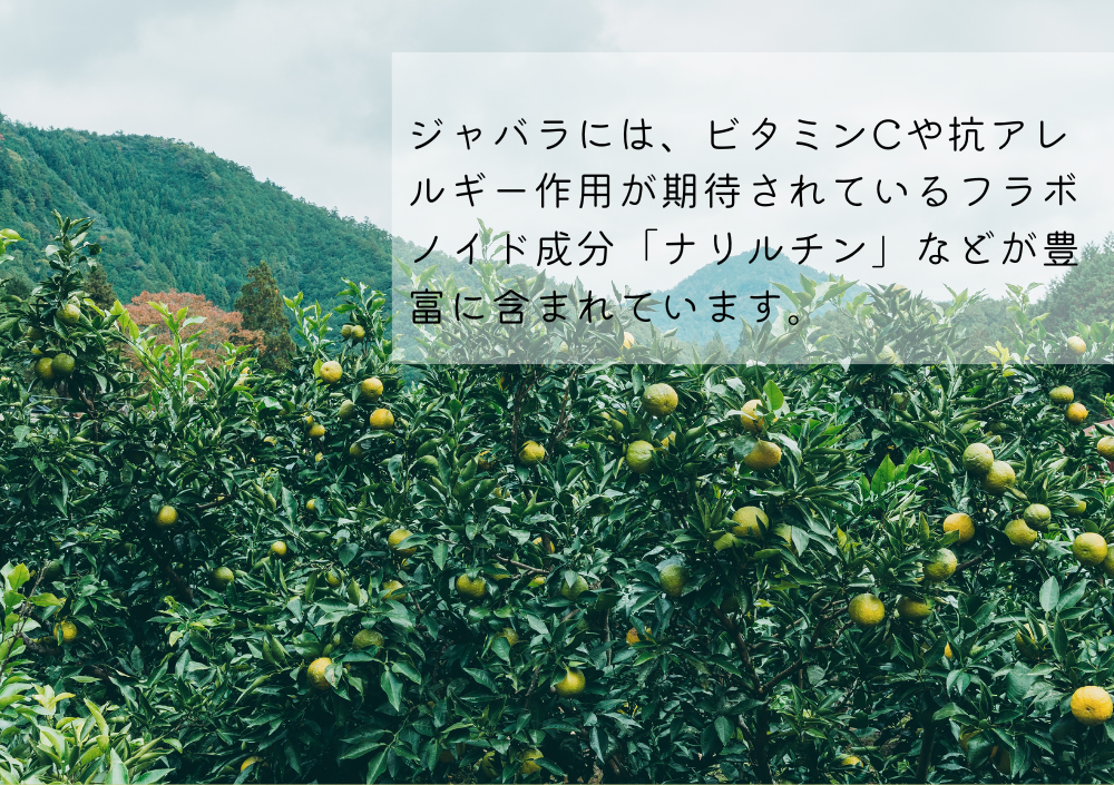 ・豊富な栄養素: ジャバラには、ビタミンCや抗アレルギー作用が期待されているフラボノイド成分「ナリルチン」などが豊富に含まれています。