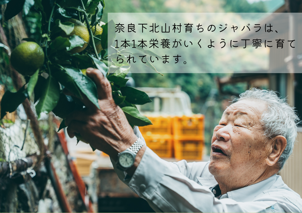 奈良県下北山村は、周囲を山々に囲まれた自然豊かな村。ここで育ったジャバラ果実は、太陽の光をたっぷり浴びて育ち、香り高く濃厚な味わいが特徴です。