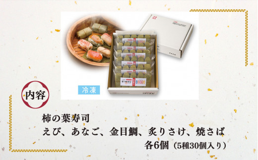 柿の葉寿司 5種30個入り 【冷凍】 | えび あなご 金目鯛 炙り…