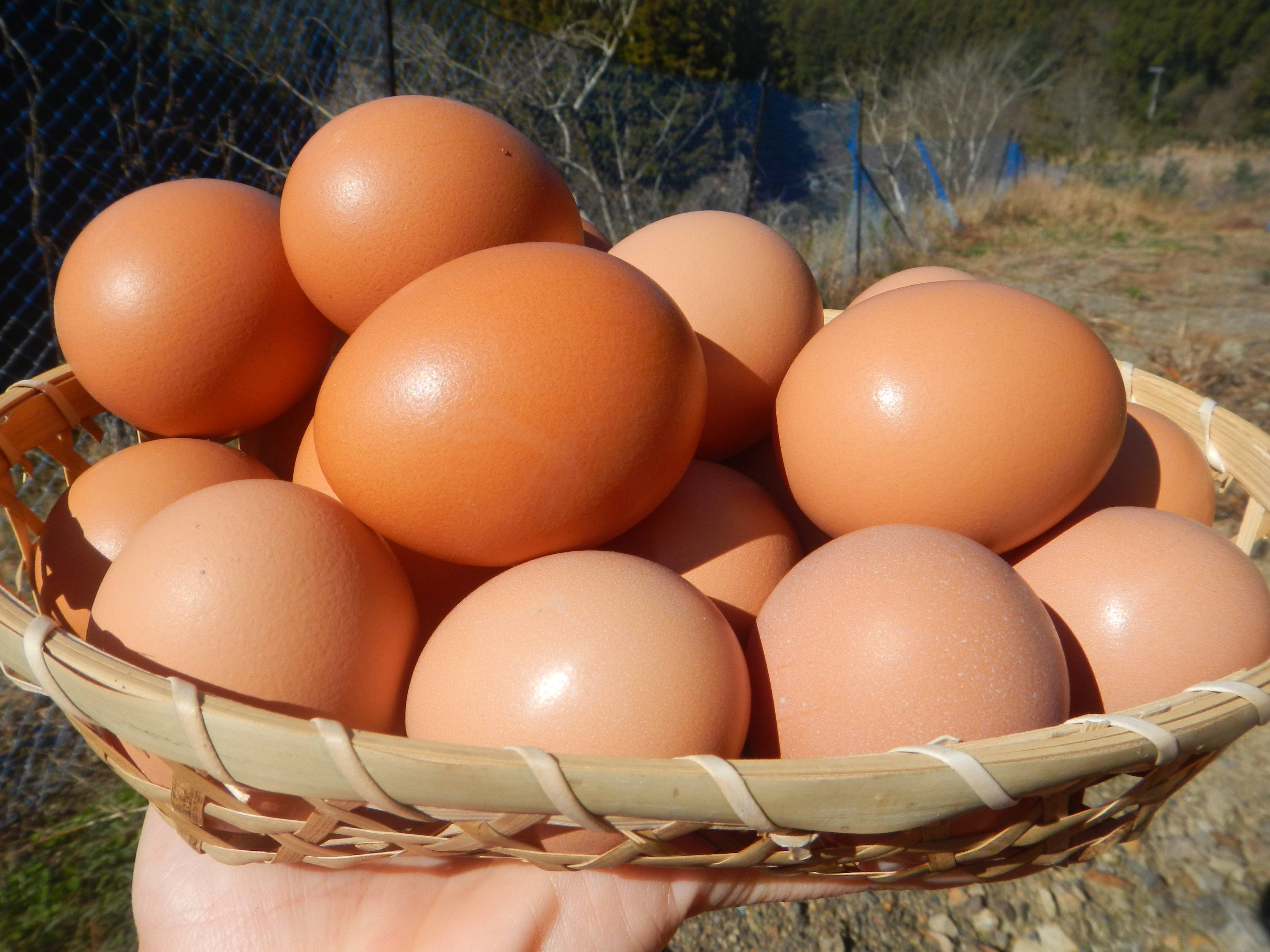 全国で数百羽しか飼育されていない和歌山県の地鶏、龍神コッコのたまごです。サイズは小さめですが、黄身の割合が多く旨味成分の含有が多いのが特徴です。龍神コッコとは、和歌山県特産地鶏品種として養鶏研究所で研究開発された和歌山県の特産地鶏で、 体が小さい品種なので、たまごのサイズが約40グラムと、通常の鶏卵(約60グラム)より小ぶり 、旨味成分(グルタミン酸)の含有量が一般卵より多く、産卵数が少なく希少なたまごです。 龍神コッコの親である龍神地鶏は、和歌山県田辺市龍神村の旧家で明治時代以前から代々受け継がれ飼育されてきた、歴史のある大変貴重な日本鶏の一つで、メスは1枚ずつの羽に黒い縁取りがあるのが大きな特徴。オスは他の日本鶏にも多くみられる、赤笹模様。 言い伝えによると、南方熊楠さんの友人であった龍神村の旧家に熊楠さんが滞在された時に『この羽の模様はとても珍しいので、大切に子孫を残してゆくといいでしょう』とおっしゃられ、そのお宅で血を絶やすことなく飼われてきたと言われています。 その特徴のある美しい羽模様から、観賞用としてほんの僅かだけ飼育されていましたが、絶滅の危機に瀕しており、2009年鶏研究家でもある秋篠宮様と東京農大の共同研究による遺伝子調査論文が発表されたことで、2012年から和歌山県畜産試験場養鶏研究所で、龍神地鶏の保護研究後、掛け合わせによる特産品種が完成。2021年和歌山県特産地鶏品種として県知事により「龍神コッコ」と命名され「龍神コッコ普及協議会」を発足。和歌山県を代表する地鶏として普及できるよう活動して参りますので、応援のほどよろしくお願い申し上げます!