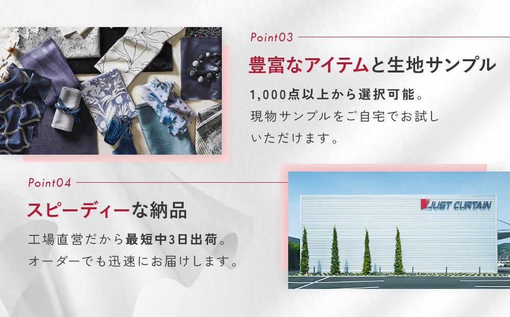 ・オンラインショップでは出張採寸・施工サービスを実施しておりません。出張採寸・施工サービスをご希望の場合は、ジャストカーテン直営店舗またはパートナーショップをご利用ください。