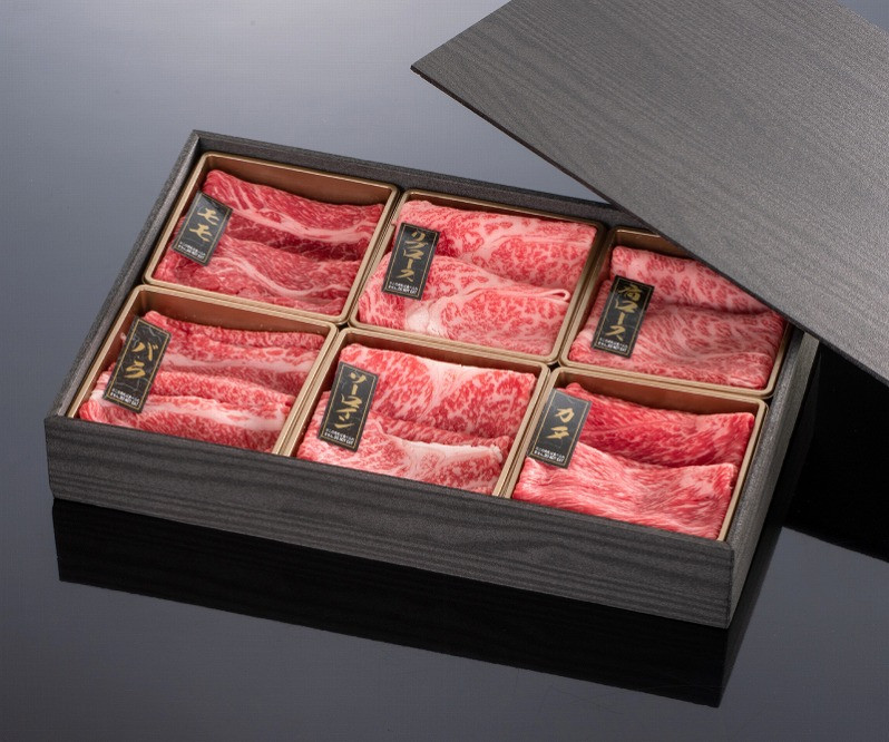 サーロイン・リブロース・肩ロース・肩・モモ・バラの6種の部位をしゃぶしゃぶ用にカットいたしました。