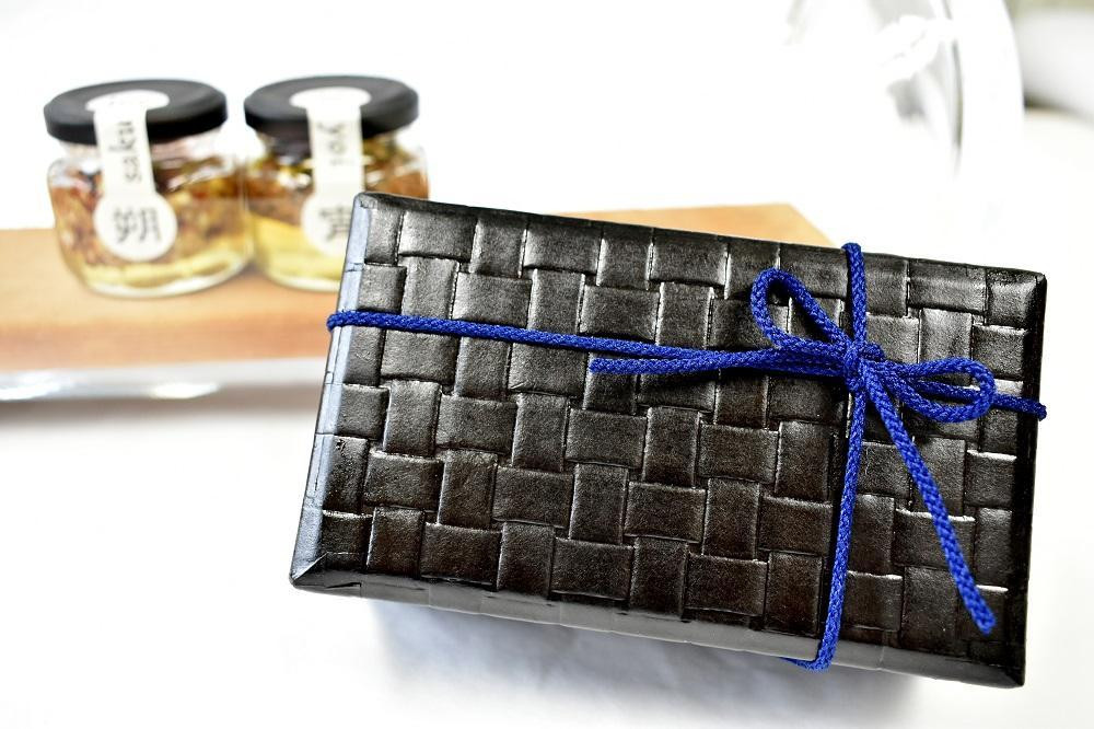 職人の手造りによる紙箱に天然素材(柿渋)を塗布した網代模様箱【紀州塗箱】は防腐・抗菌効果があり、重厚な風合いはギフトにお勧めです。