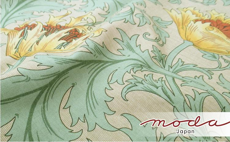 moda fabrics「BEST OF MORRISシリーズ」のコットン100%日本製シーチング生地は、やわらかな肌ざわりと繊細なプリントが特徴です。