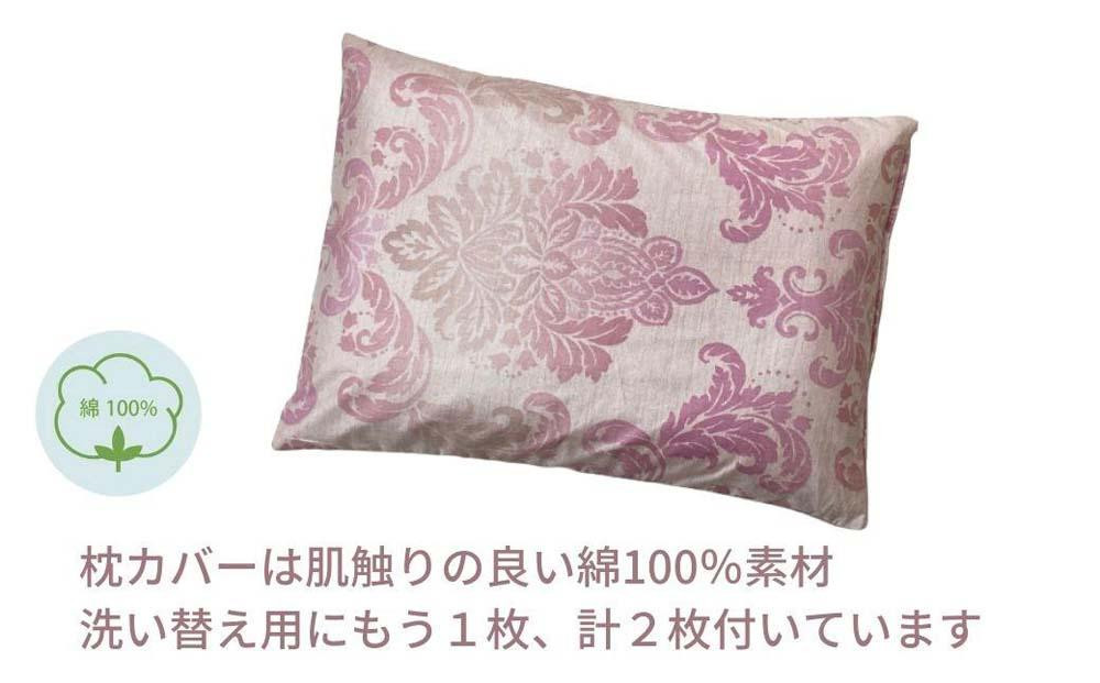 | 容量 | ■内容量・サイズ/加工地 枕 1個 枕カバー:2枚付き サイズ:(約)43×63cm 生産国:日本 加工地:和歌山市 ■原材料 枕本体 側生地:綿60%・複合繊維(ポリエステル)40%、詰め物:ポリエステル100% 枕カバー:綿100%(ファスナー式) |