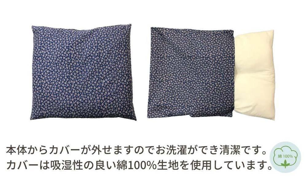 カバーは綿100%素材、銘仙版(約55×59cm)サイズです