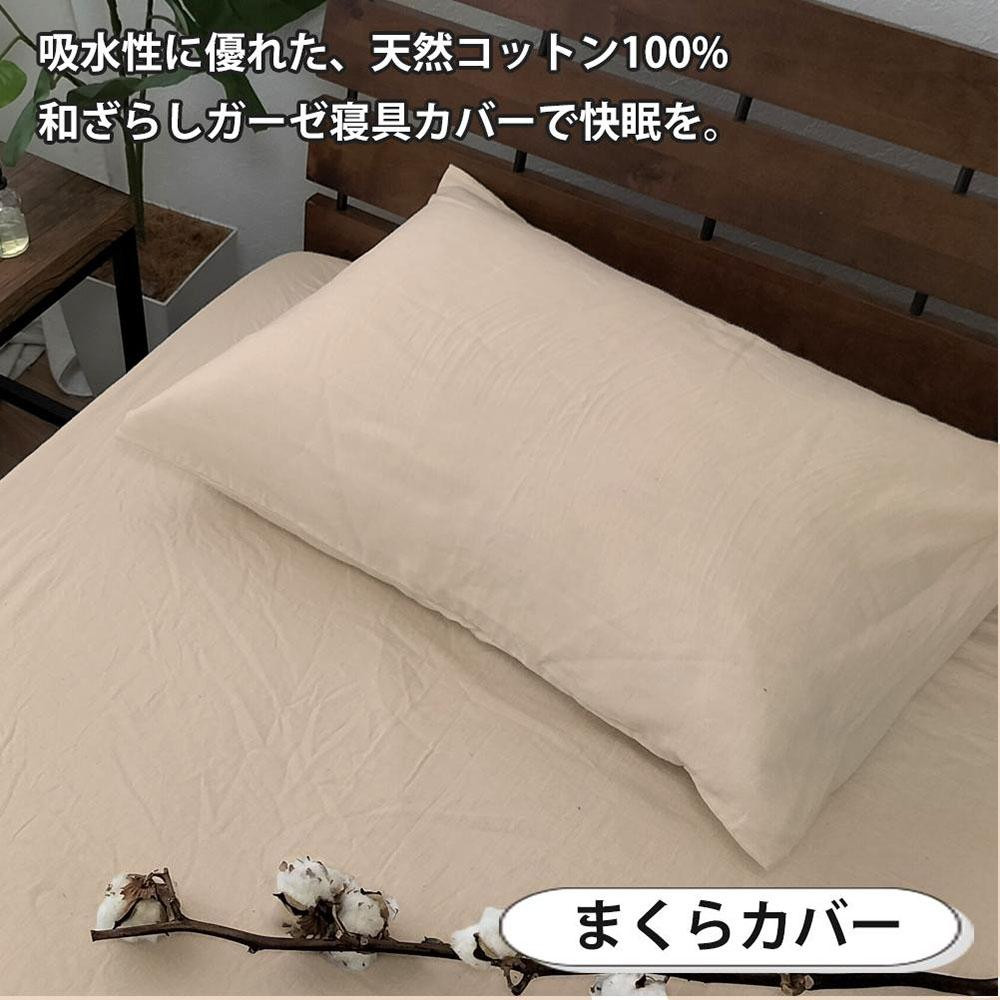 ※画像はイメージです。お届けするのは【シングル】やわらか和晒しガーゼ 綿100%カバーリング2点セット(掛カバー・ピロケース)【ベージュ】×1セットです。