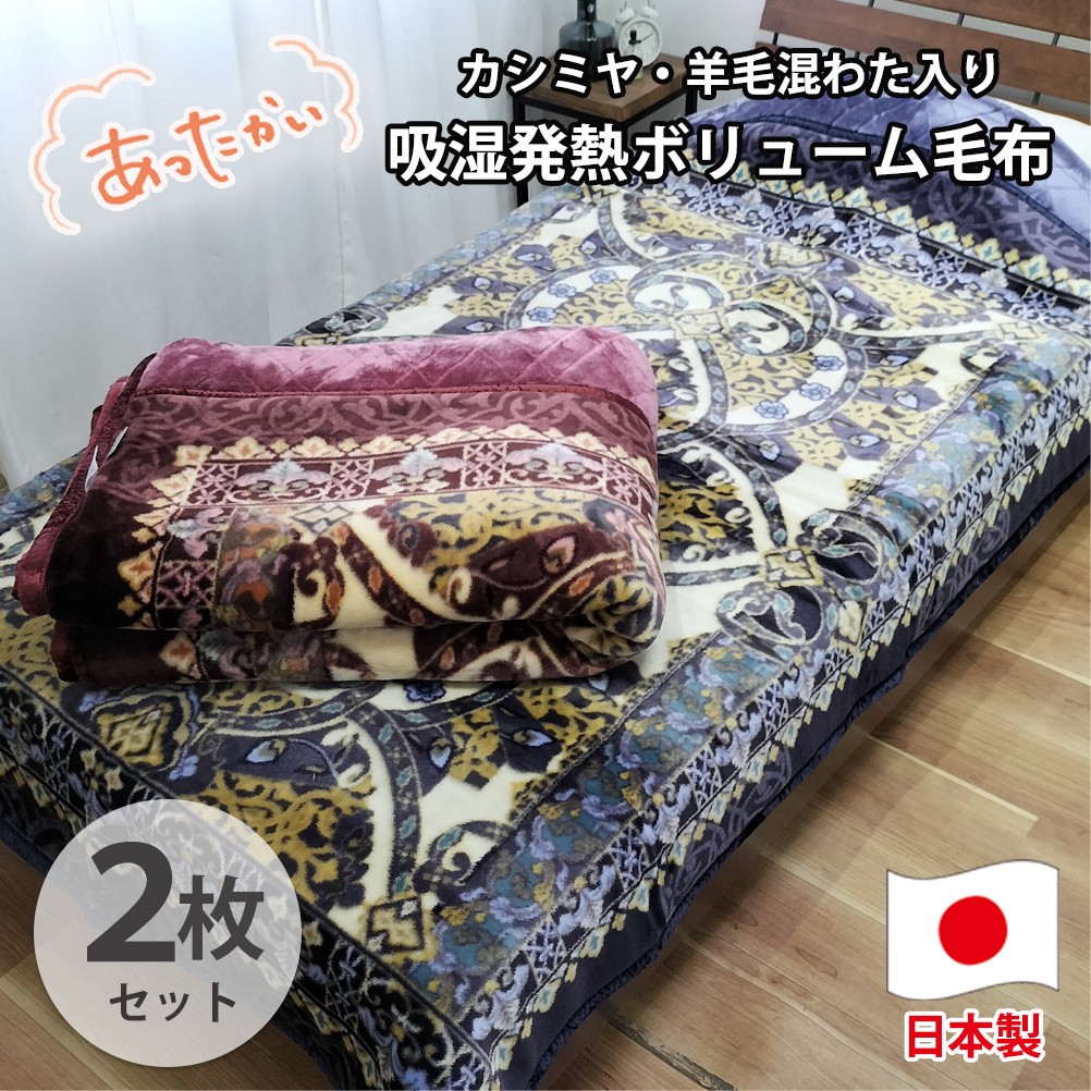 贅沢に天然カシミヤ・ウール混ポリエステルわたをたっぷり入れたボリューム感のある毛布です。