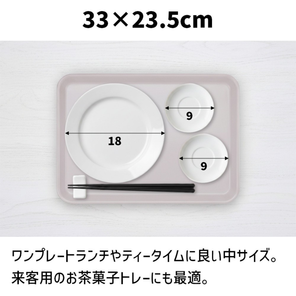 表面のすべり止め加工で、コップやお皿が滑りにくく配膳が安定します。飲み物を運ぶ時やテーブルへ移動する時も手元がぶれにくく、毎日の食事がスムーズになります。お子さまのお手伝いにも使いやすい設計です。
