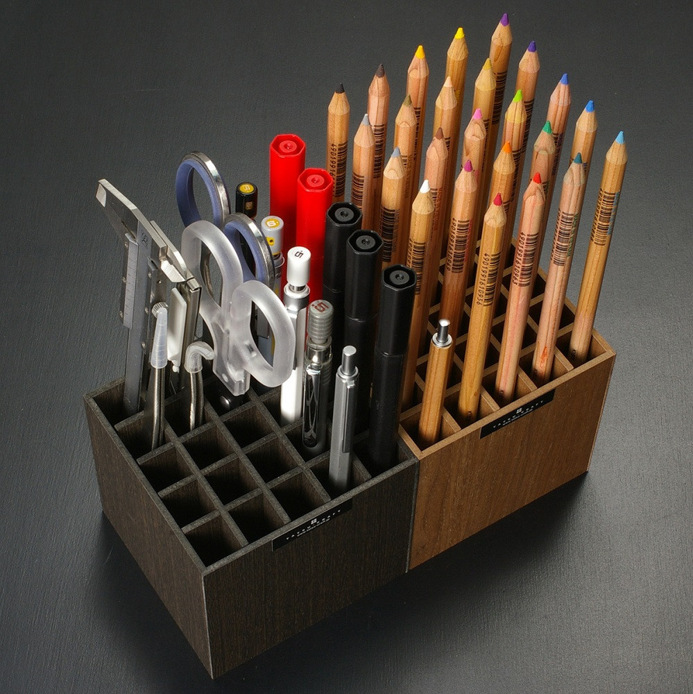 マス目のない一般的なペン立てでは煩雑になりがちですが、このスタンドは見た目が美しくなるのが大きなポイント。さらに、小さなマス目ごとに収まるので取り出しやすくなります。