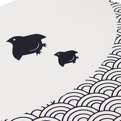 吉祥文様の”波千鳥”柄を現代風にアレンジした脚折式の「和風カフェテーブル」です。直径45cmのサイズは一人膳としてはもちろんのこと、和風のインテリアとしてお楽しみ頂けます。使わない時は脚が折れて高さ6.5cmとなりますのでとても収納便利です。塗装は島安オリジナルの乾漆塗装で、キズに強く大変丈夫です。”波千鳥”は、波を世間に例え、「大波小波も一緒に乗り越えていきます」という意味から夫婦円満、家内安全を表す縁起のよい文様とされています。また、”千鳥”=”千取り”という語呂合わせから、勝運祈願・目標達成の意匠としても古くから使われています。日本古来の吉祥文様のテーブルで、毎日を縁起良く過ごされてみてはいかがですか。