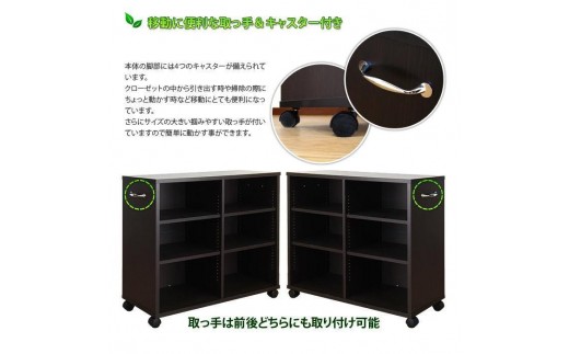 スリムなボディながらしっかりした収納力があり、移動も取っ手とキャスターで簡単にできるので場所を選ばず使用する事ができます。