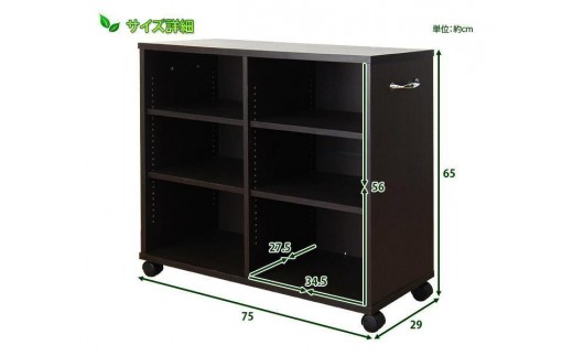 容量 | 【サイズ】 約 幅75×奥行29×高さ65cm オープン内寸:約幅34.5×奥行27.5×高さ56cm(×2ヵ所) 【原材料名】 プリント化粧板 |