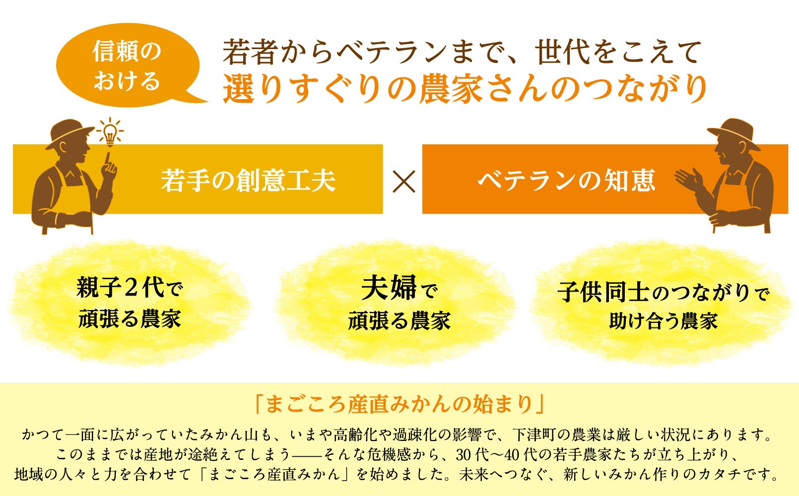 "まごころ産直みかんは、和歌山県下津町の30~40代が中心の若手農家の集まりです。