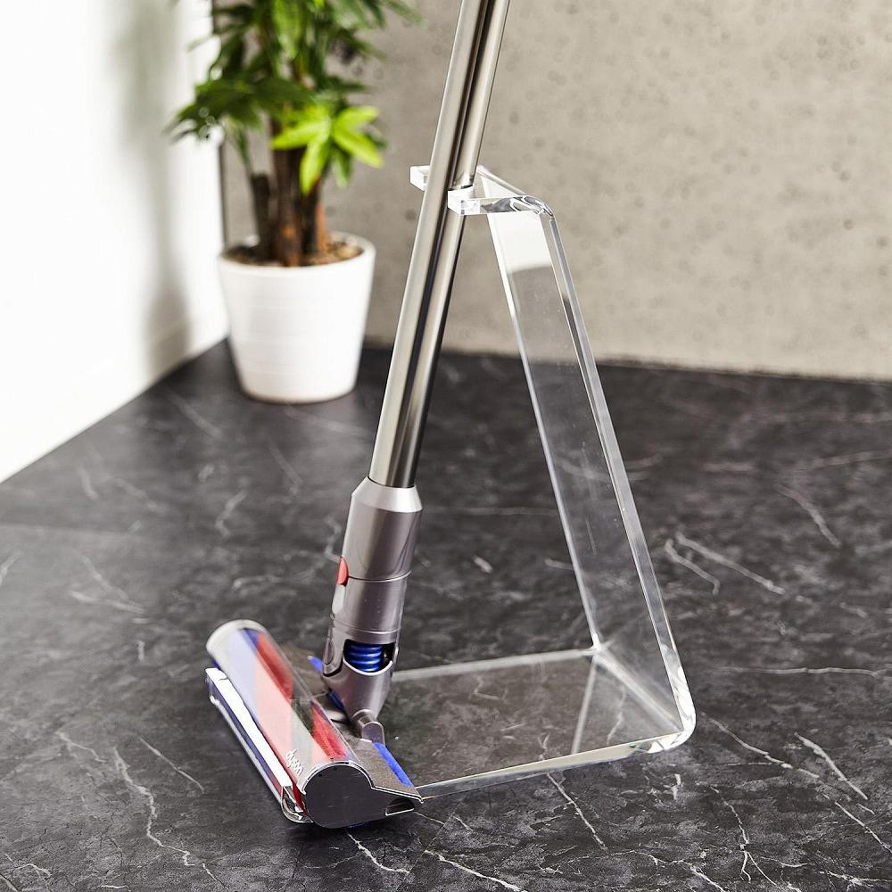 上部の半円形の凹みと、下部の立ち上がりでしっかりクリーナーを支えます。