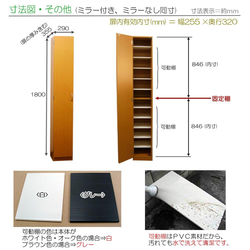 | 容量 | カラー:3色からお選びいただけます。 ■ブラウン(木目), オーク(木目), ホワイト(単色:真っ白ではございません) ■サイズ情報:約幅290奥行355(扉の厚み含む)(有効奥行内寸:320)高さ1800mm ■主な素材:プリント化粧合板 可動棚:PVC素材(汚れても水で洗えます) 取っ手:スチール製(シンプルで重厚感・高級感があります) お客様組立式、固定棚1枚、可動棚10枚(奥行290mm)、転倒防止金具付き ※商品の天板上面は化粧されておりません。 ブランド名:家具工場直販 家具ファクトリー メーカー型番: shoe-w29 製造国:日本 海南市で行われている工程:製造、販売 組立状態:要組立品 |