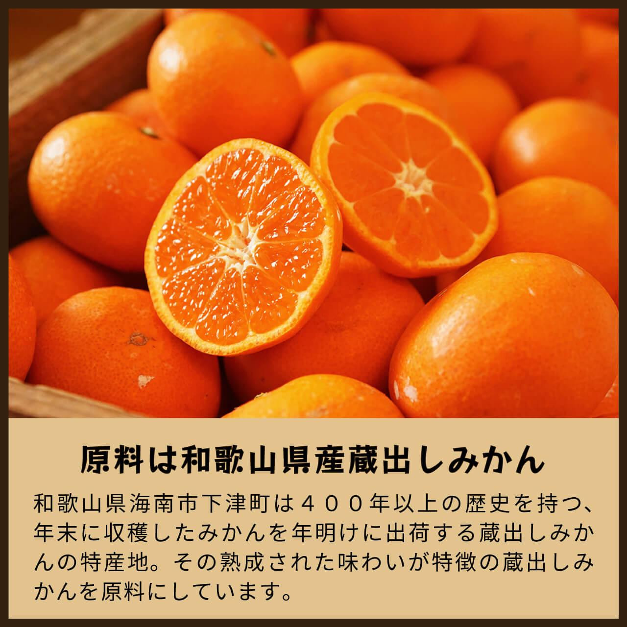 蔵出しみかんとは年末に収穫したみかんを1か月以上、蔵にて熟成させ、年明けに出荷する本格貯蔵みかん。貯蔵により酸味がまろやかになりコクのある味わいに仕上がります。平成31年に日本農業遺産にも認定された、今注目の和歌山県海南市下津町の特産品です。その蔵出しみかんの熟成された味わいをそのまま楽しんでもらいたい。そんな想いで果汁を水で一切薄めずに固めました。なんと果汁88%。口当たりの優しい滑らかなゼリーに仕上がっていますのでお子様からお年寄りまで皆さんで楽しめる味わいとなっています。