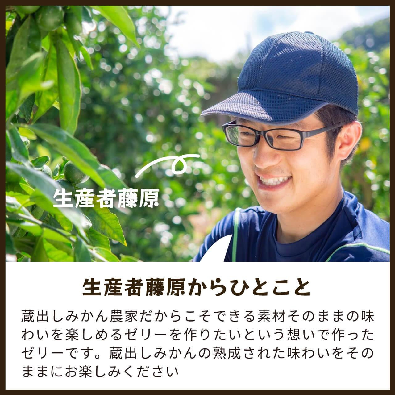 年末に収穫したみかんを1か月以上熟成させた蔵出しみかん果汁を88%も使用。果汁を一切水で薄めずに固めたみかん農家だからこそできる濃厚ゼリーです。