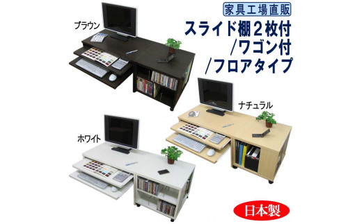 【全3色】スライド棚2段 ロータイプ ワゴン付 パソコンデスク …