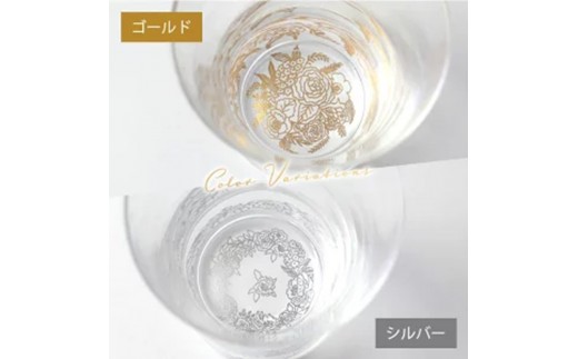 グラスの底で金と銀が織りなす、美しいボタニカルのデザインです。