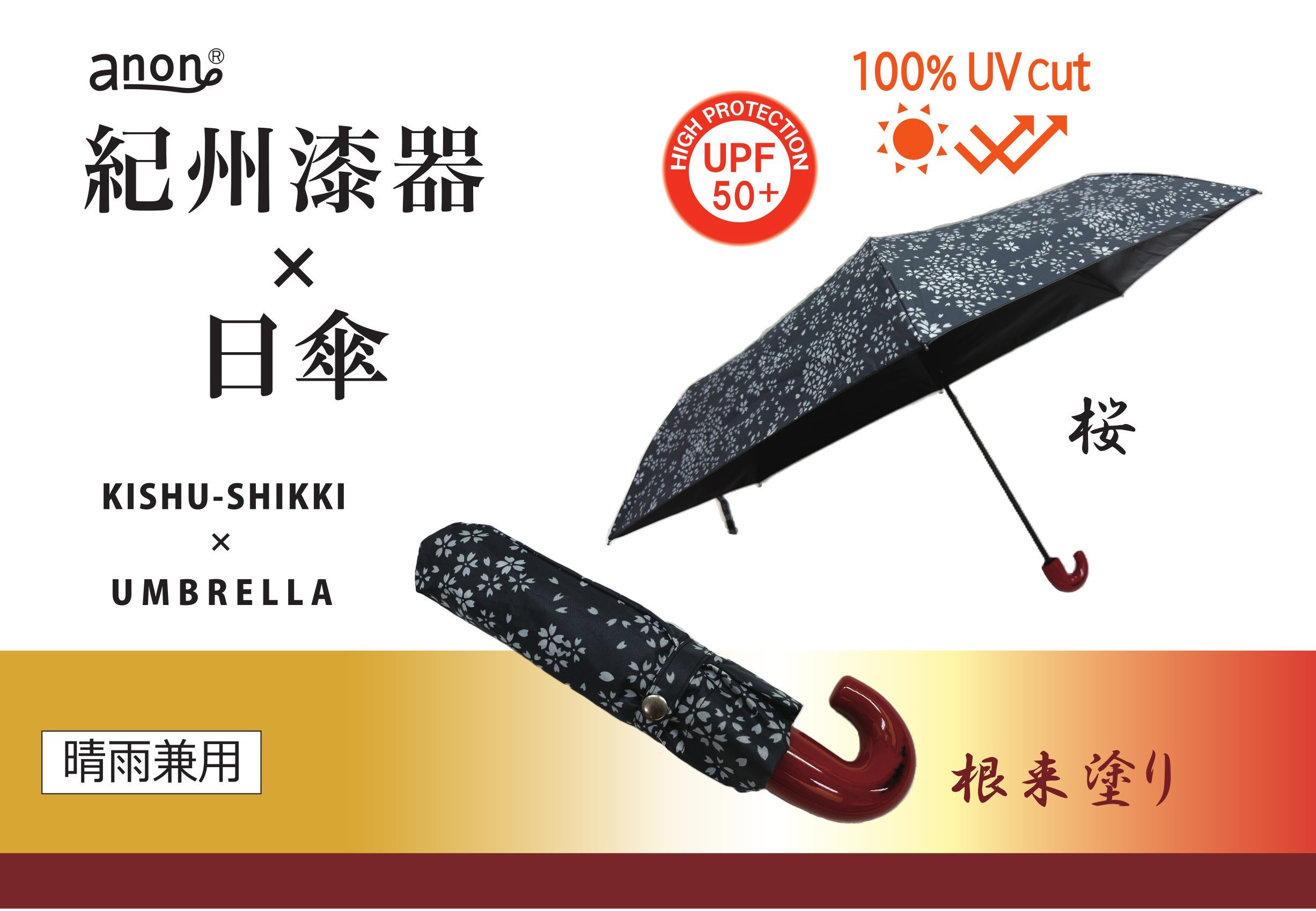この自治体のポイントについてチョイス公式ポイント交換対象 【選べる塗り色】anon 晴雨兼用傘 <曙塗りまたは根来塗り> 桜 黒コーティング加工 紀州漆器アンブレラ 和柄 日傘 100%UVカット UPF50+ 折りたたみ傘 ギフト箱入り