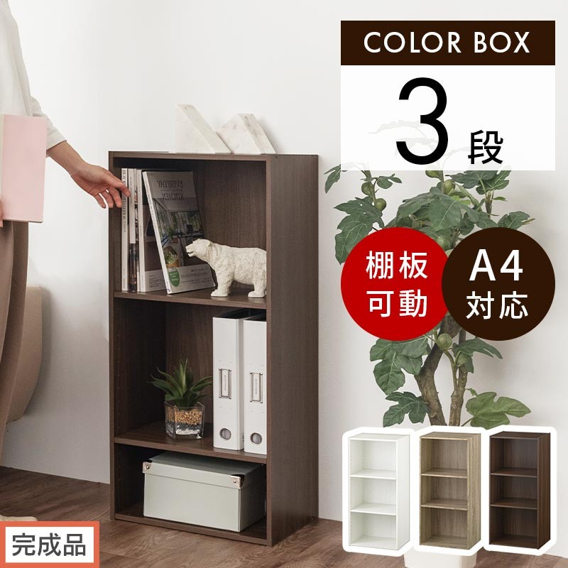 | 容量 | カラーボックス〔可動棚・3段〕(AKANBR920129) カラー:選べる3色 ホワイト、オーク、ウォールナット 商品仕様 ■材質:プリント紙化粧繊維板 ■耐荷重:各棚板約5kg ■背面化粧:無し 商品サイズ(約mm) ■商品外寸:幅420×奥行291×高さ892 ■商品重量:約8.9kg |