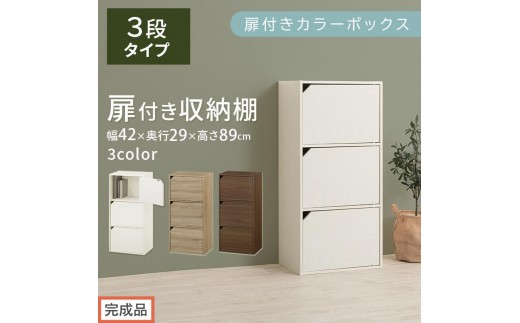 扉付きなのでスッキリ隠せて、収納物をホコリや日焼けから守れる3段タイプのカラーボックスです。