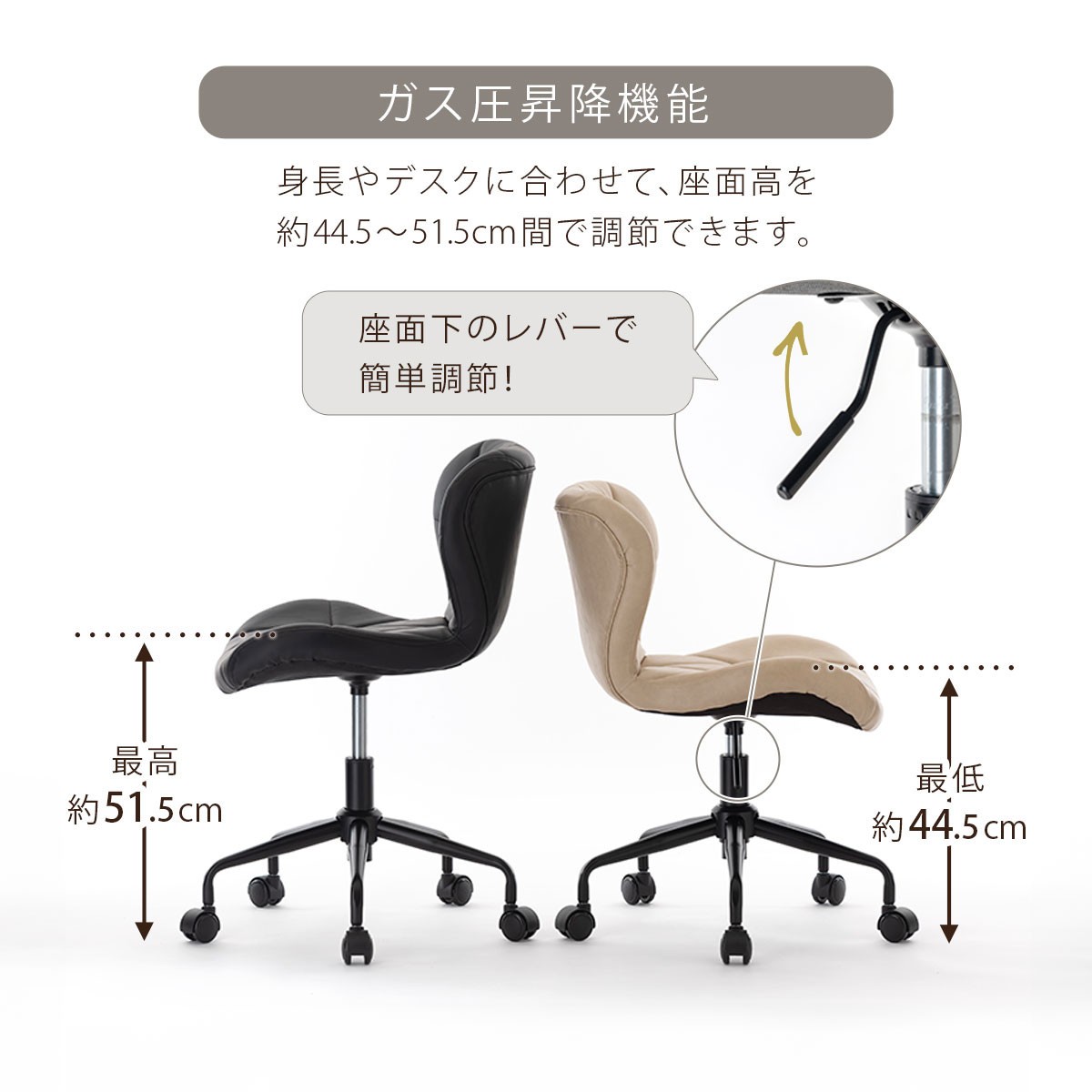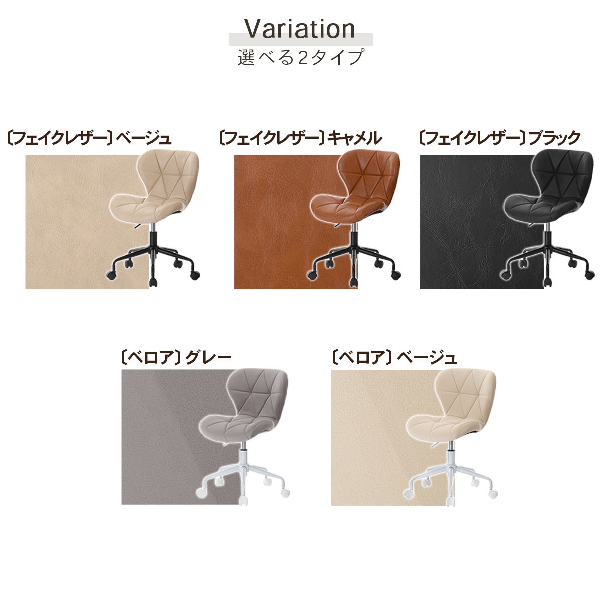キャスター付きデスクチェア。フェイクレザー、ベロアの2種類の張地から選べます。