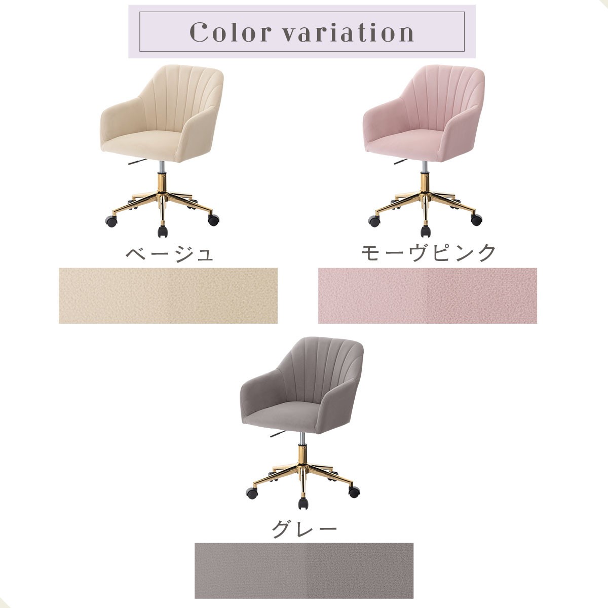 ベロアの張地とゴールド脚がおしゃれなキャスター付きデスクチェアです。