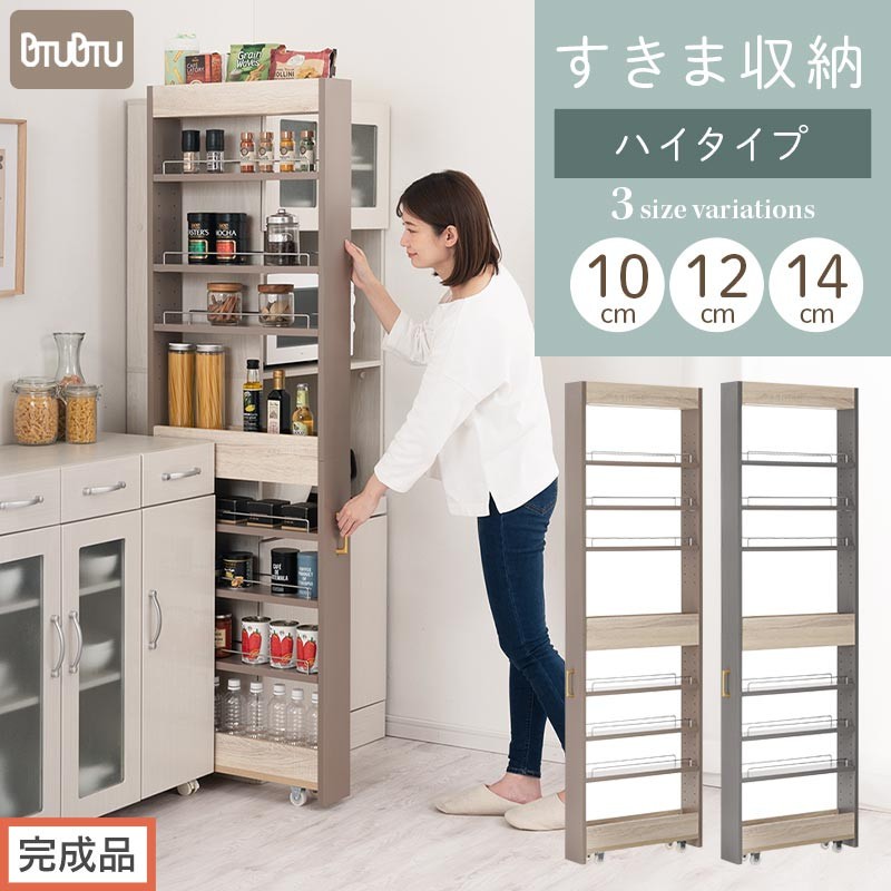 | 容量 | すき間 ワゴンラック ハイタイプ〔幅10~14cm〕(KRA945070) ▼下記よりお選びください(2色×3サイズ) ・カラー:グレージュ・グレー ・サイズ:【幅10cm】【幅12cm】【幅14cm】 商品サイズ(約mm) 【幅10cm】 ■商品外寸:幅100×奥行549×高さ1798 ■商品重量:約14.1kg 【幅12cm】 ■商品外寸:幅120×奥行549×高さ1798 ■商品重量:約16.1kg 【幅14cm】 ■商品外寸:幅140×奥行549×高さ1798 ■商品重量:約18.4kg ■材質 本体:プリント紙化粧繊維板 取っ手:亜鉛合金 キャスター:プラスチック 転び止め:スチール ■総耐荷重:約45kg ※一段に集中しての収納はご遠慮ください。 ■背面化粧:有り |