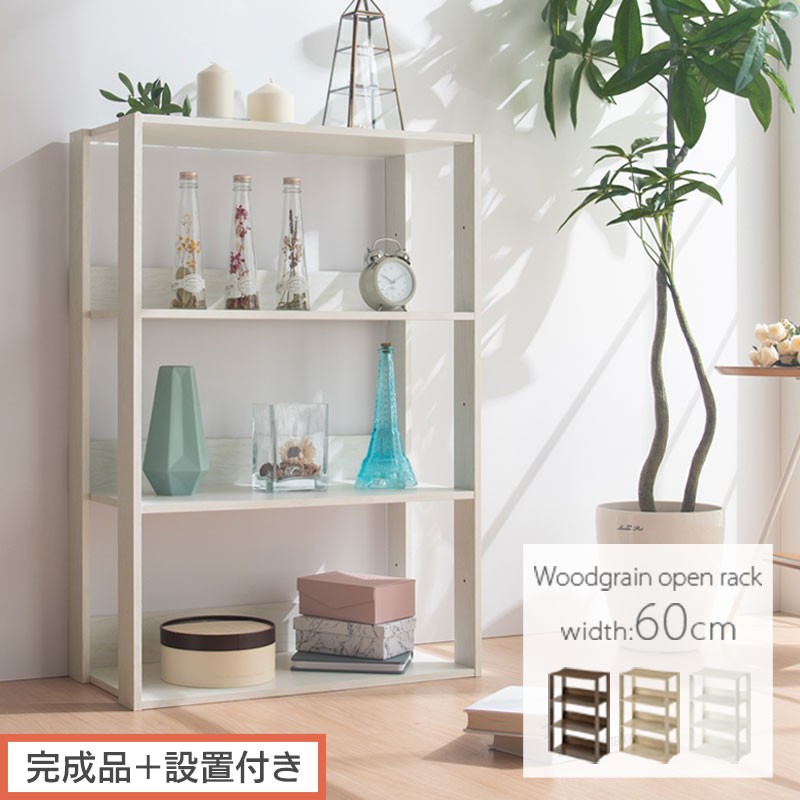 チョイス公式ポイント交換対象 【完成品+設置付き】オープンラック 幅60cm (選べる3色)オープンラック 木製 北欧 3段 幅60cm スリム 奥行29cm 3段ラック マルチラック オープンシェルフ ディスプレイ ラック シェルフ LKONRA001186