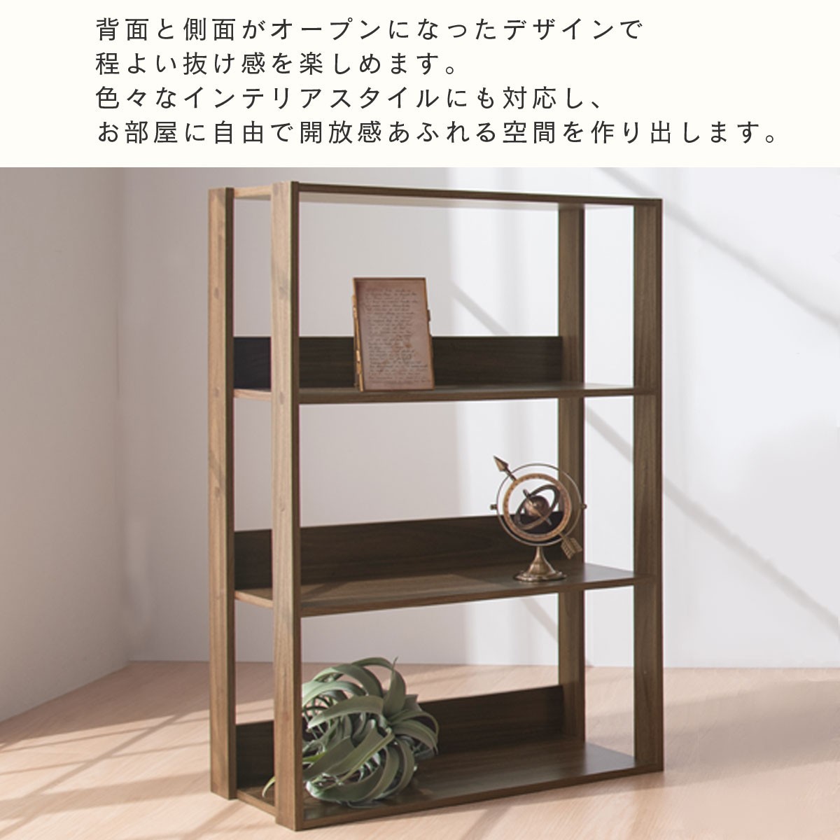 背面と側面がオープンになったデザインのディスプレイラック。色んなインテリアスタイルにも対応し、お部屋に自由で開放感あふれる空間を作りだします。〔60cm〕