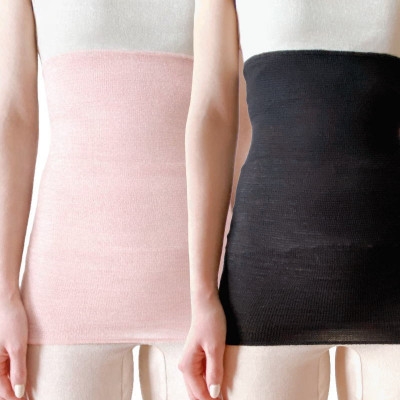 <さくらピンク1枚・ブラック1枚>(2枚セット)シルク100%オールシーズン腹巻き(男女兼用)【1490479】