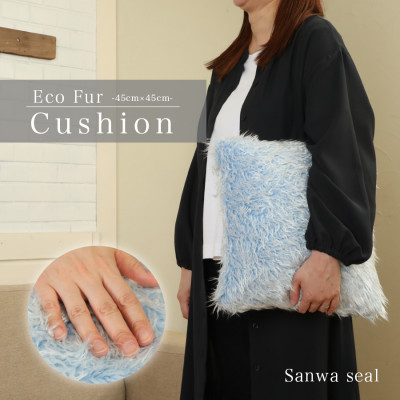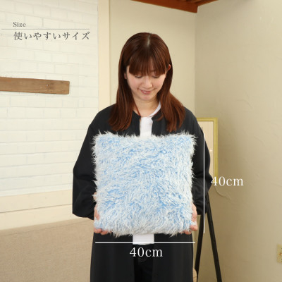 かわいいフェイクファークッション ブルー カバーチャック付 正方形 無地 北欧【1519450】