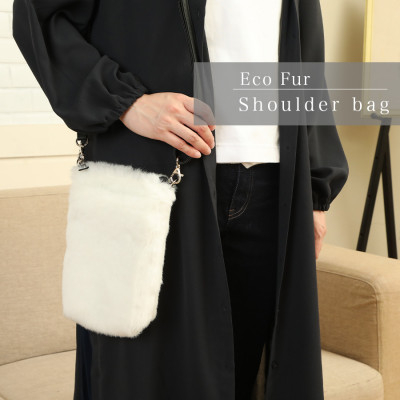 ショルダーバッグ フェイクファー レディース スマホポケット F-2925 白【1519454】