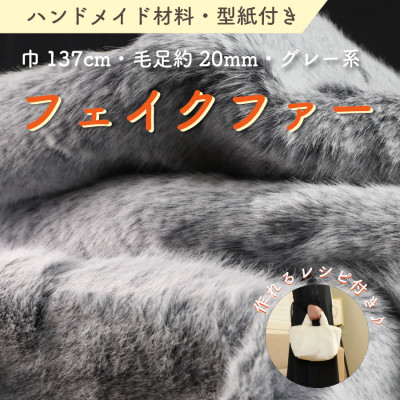 ハンドメイド材料 フェイクファー 生地 巾137cm×50cm 型紙付 MM4330 グレー系【1519502】