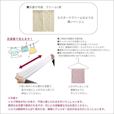 | 容量 | ■お礼品の内容について ・シルク枕カバー クリーム[1枚] 原産地:日本/製造地:和歌山県橋本市 ■原材料・成分 シルク100%(別途ゴム糸使用) |