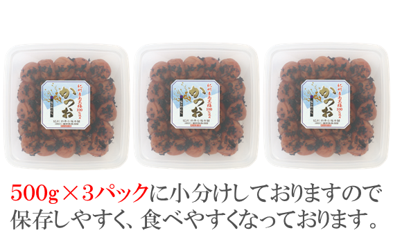 | 容量 | 紀州南高梅 かつお風味1.5kg(500g×3パック) |