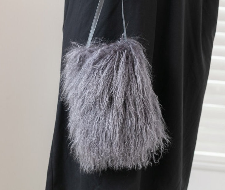 ファーの長さは約8cm前後で、くるくる、もこもこのプードルファーのような見え方がとっても魅力的で、コーディネートのアクセントになるバッグを探しているならお勧めです。