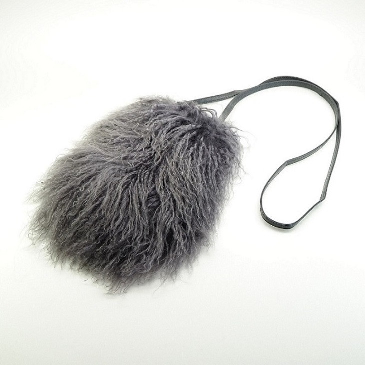 チョイスPayポイントと交換できる品 数量限定/ふるさと納税限定!斜めがけできるミニポシェットです。 くるくる可愛い チベットラム毛皮ポシェット グレー