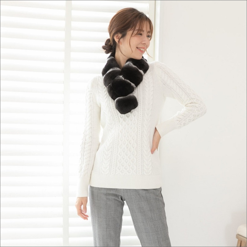 感触だけでなく見た目でも魅了するチンチラのマフラー。