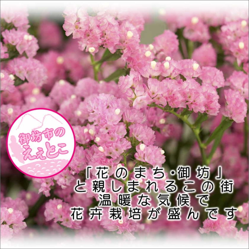 日本一の生産量を誇るスターチスをはじめ、ガーベラやバラなど花の産地として知られています。