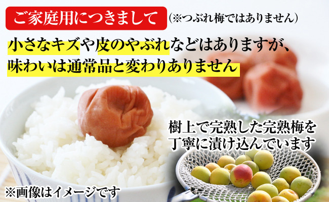 梅に少しキズが付いていたり、皮に切れがあるだけで、味わいは最高級品と全く同じです(※つぶれ梅ではありません)。