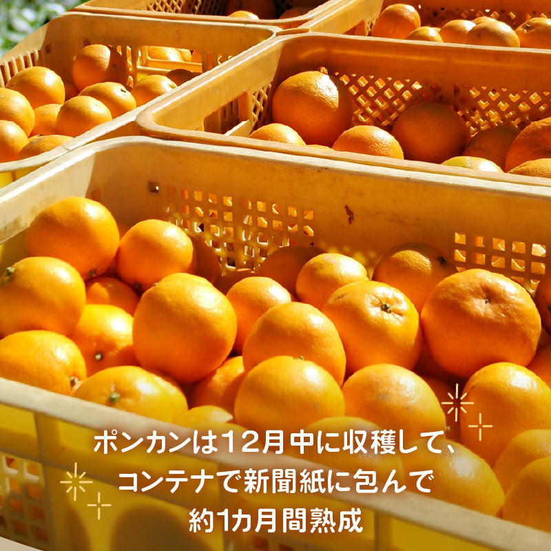 ポンカンは12月中に収穫して、コンテナで新聞紙に包んで約1カ月間熟成させておりますので、大変甘いポンカンとなっております。