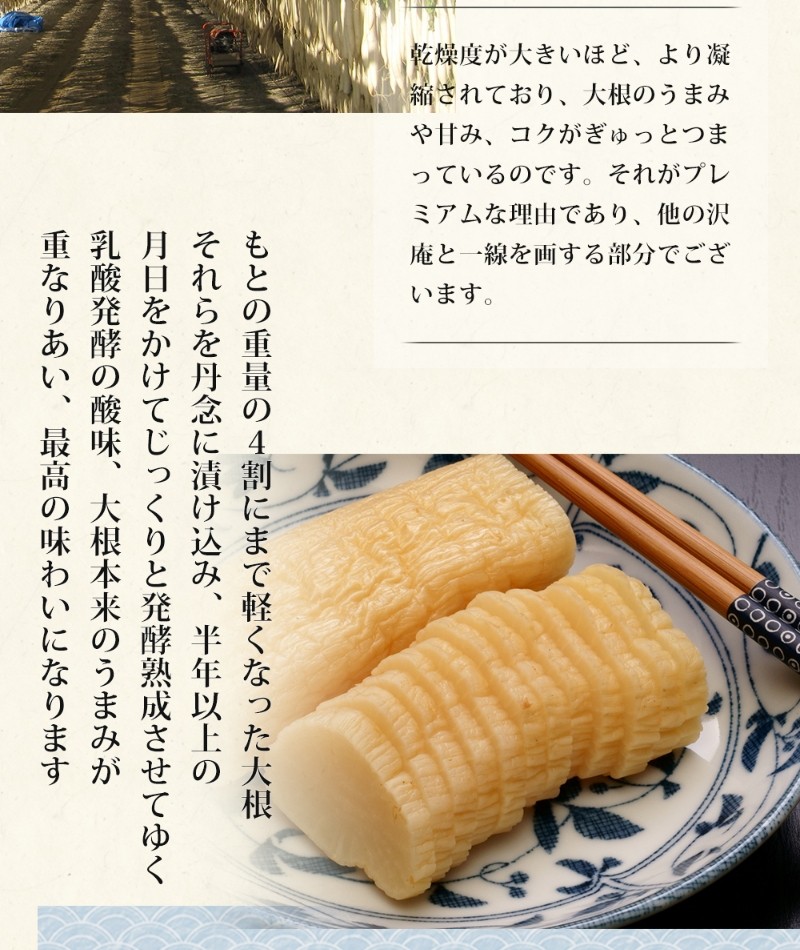 | 容量 | プレミアム沢庵3本(600g前後) |