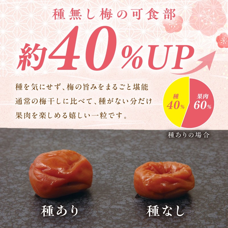 和歌山県産紀州南高梅を100%使用し、梅干しの種を一粒一粒丁寧に取り除きました。