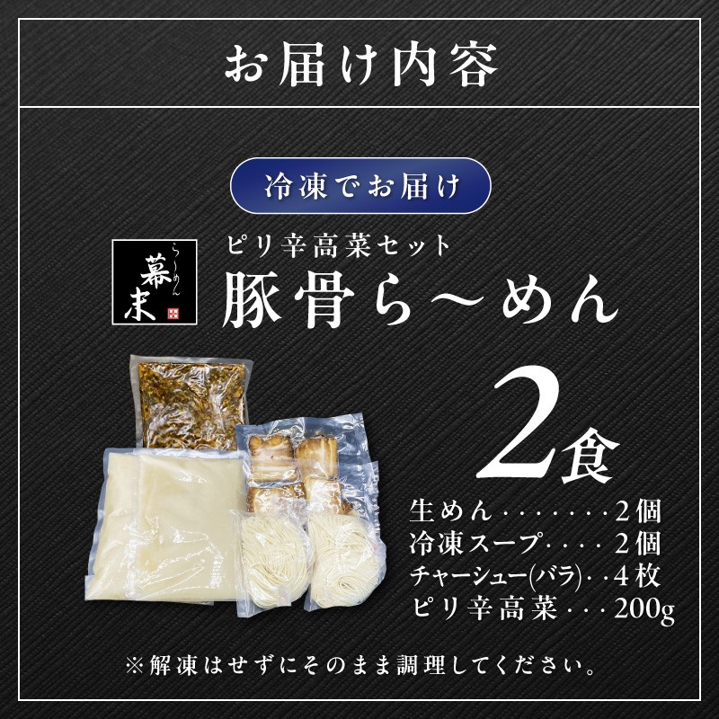 チョイスPayポイントと交換できる品 豚骨スープ・麺・チャーシューの三位一体の【幕末のら~めん】をご賞味ください! 豚骨ら~めん(2食入り)・ピリ辛高菜セット