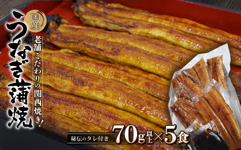 国産の鰻にこだわった伝統の味 国産うなぎ蒲焼 大サイズハーフカット(頭尾なしで1袋70g以上)5袋セット / 田辺市 国産 国産うなぎ 国産鰻 うなぎ 鰻 蒲焼 かば焼き 土用の丑の日 冷凍 【ots003】
