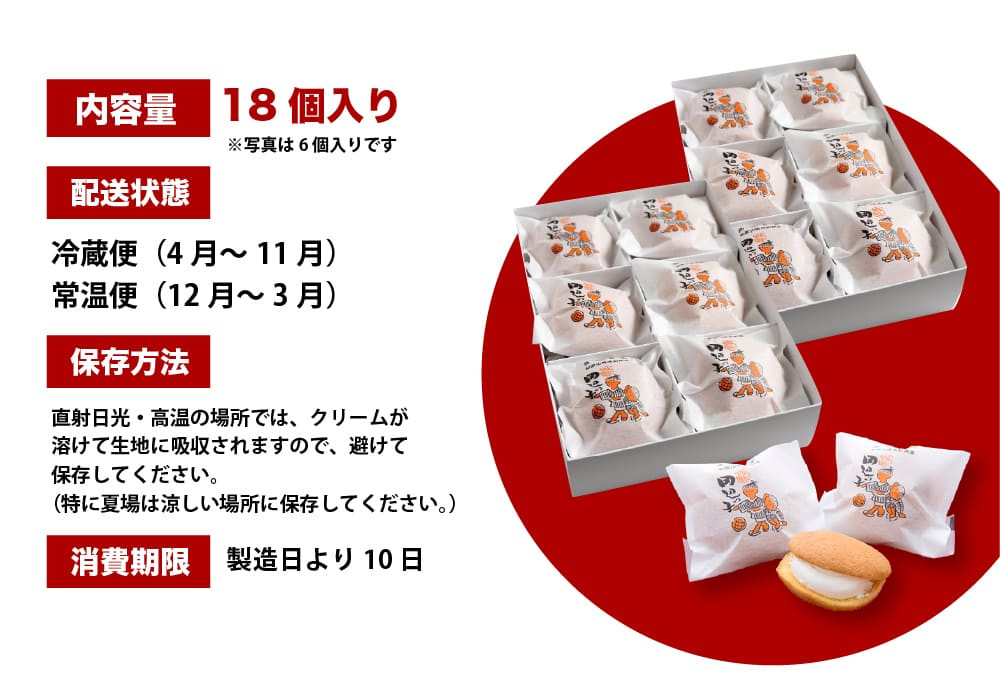 | 消費期限 | 製造日より10日間 ※直射日光・高温の場所では、クリームが溶けて生地に吸収されますので、避けて保存してください。 (特に夏場は涼しい場所に保存してください。) |