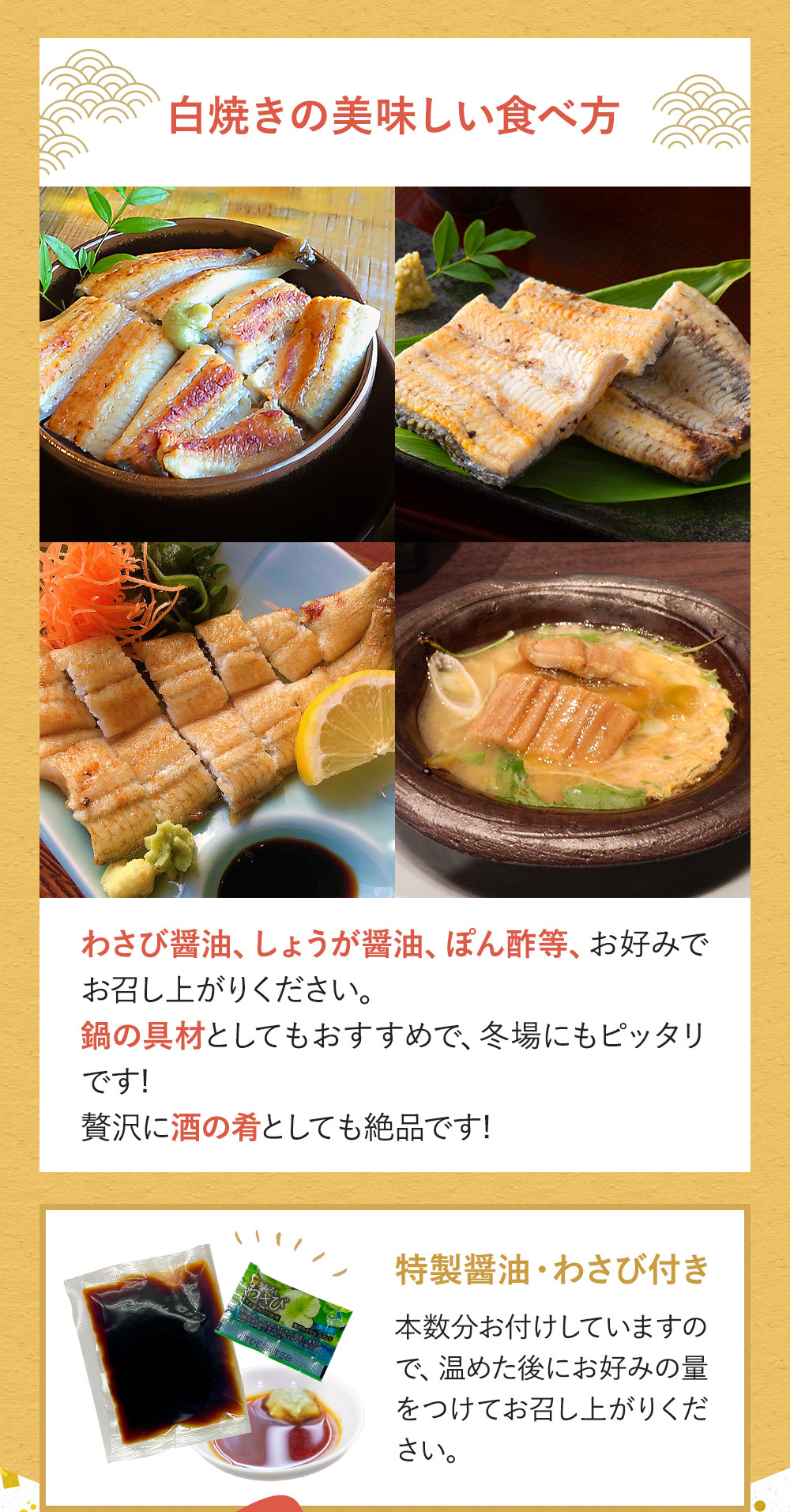 【3カ月定期便】国産うなぎ白焼(2本)×3回 特製醤油・わさび付…